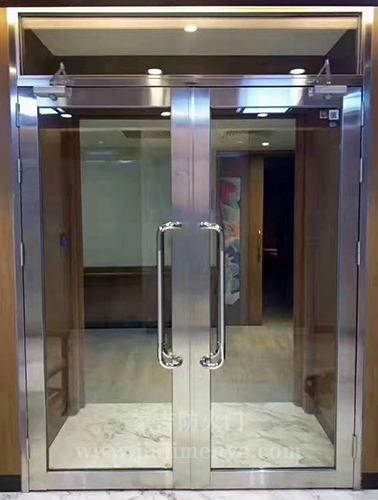 304不銹鋼防火玻璃門、鋼質防火玻璃門,由復合防火玻璃和鋼質扇體組成,主要用于需要透光性好,且又需滿足消防要求的安全通道、辦公室大門及酒店大堂一層會客大堂,對通透性和美觀又要求的地方通常用的比較多,防火玻璃多采用雙層復合夾膠防火玻璃,夾層不能有雜質和氣體。